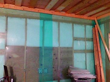 写真は、壁の垂直精度不適である。