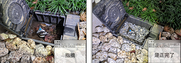 全体的に施工品質は高く、大きな指摘は無かった。下記写真のように、散水栓内は土のままであったため、協議の結果、びり砂利による仕上げとなった。その他、細かな指摘はあったがその場で対応が完了した。