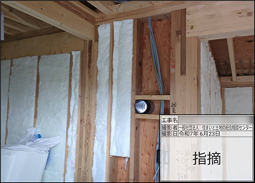 断熱材種、厚みが設計図書通りか、隙間や潰れが無いかを確認した。施工自体に大きな指摘はなかったが、写真のように工事未了部分が多数あったため、再検査を実施した。