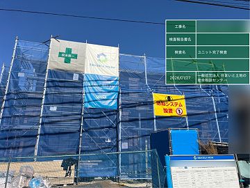 検査時期は、工場生産した各ユニット(箱型)を現場で組み立てた直後で、外部では外壁段差・外壁目地通り・欠け有無などを確認。