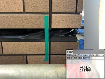 写真は、外壁縦目地が上下でズレており、仕上がり(見栄え)に関わる項目である。